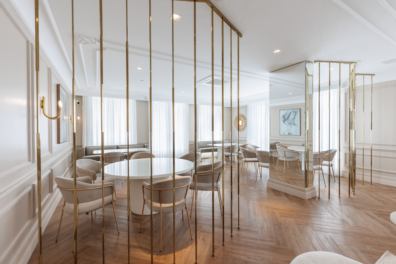Essa combinação é especialmente interessante em residências de padrão elevado, onde a inovação precisa conviver com elegância contínua. Automação, iluminação técnica, ferragens avançadas e mobiliário sob medida podem dialogar com materiais clássicos e com uma composição mais serena. O segredo está em construir uma base estável e inserir elementos atuais com medida. Assim, o novo entra no projeto sem datar o conjunto.